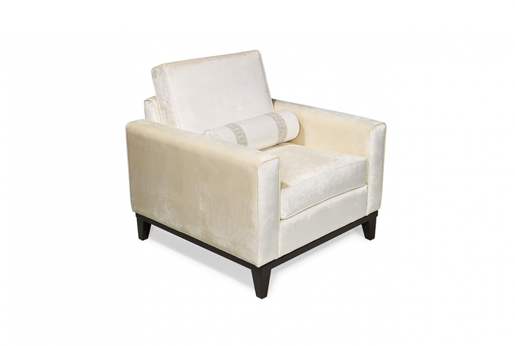 Abbott là một chiếc ghế bành bọc nệm với chân thon, được thể hiện bằng gỗ Anh đào với lớp hoàn thiện bằng Gỗ Ebonised. Nó có đệm lưng ghế cao, lưng thấp, tay thẳng và đệm ngồi thoải mái.