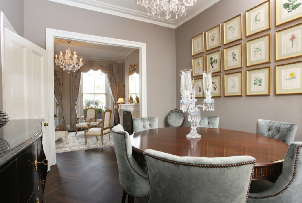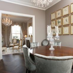 Bàn ăn Beaumont được làm bằng Gỗ Gụ với lớp hoàn thiện bằng Gỗ Gụ Tối. Chi tiết bằng Bạc hoặc Vàng lá theo yêu cầu. Giá không bao gồm vàng hoặc bạc lá.