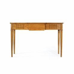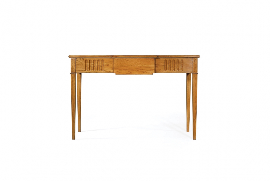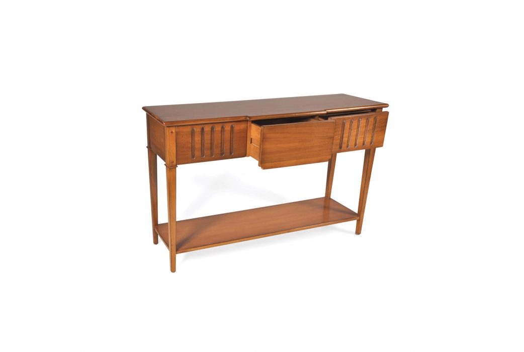 Bảng điều khiển Bastilia được làm bằng gỗ Sồi với lớp hoàn thiện bằng gỗ Sồi Tuổi. Lưu ý các chi tiết chạm khắc thủ công dọc theo viền của mảnh. Bastilia có ba ngăn kéo và có thể được làm có hoặc không có giá dưới.