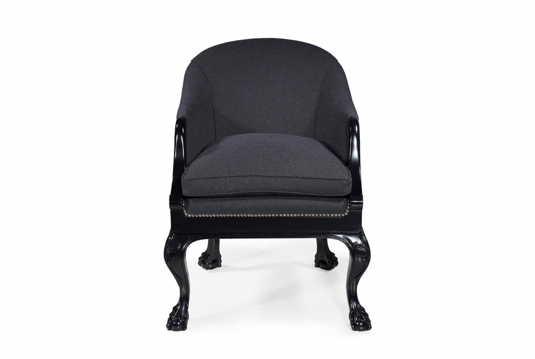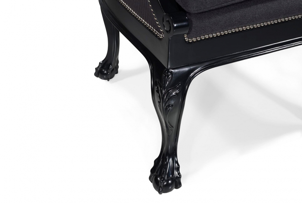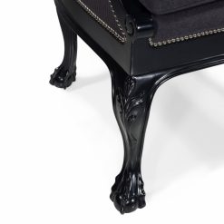 Ghế bành Arabella được làm bằng gỗ Anh đào với lớp hoàn thiện màu Đen Cổ. Nó có bàn chân và chân được chạm khắc bằng tay tuyệt vời; và nó được bọc hoàn toàn với đường ống và đinh tán.